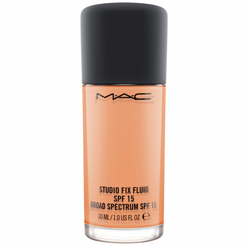 Studio Fix Fluid från MAC Cosmetics är en medeltäckande till heltäckande, flytande foundation som ger en matt look och täcker orenheter, pigmentfläckar, porer och röda prickar. Studio Fix foundation är mjuk och lätt att applicera men håller ändå väldigt länge. Studio Fix Fluid håller din hud och makeup fräsch, även om du är på språng hela dagen. Studio Fix Fluid är oljefri och den kan därför användas på fet hud eftersom den kontrollerar olja och glansighet. Studio Fix Fluid från MAC Cosmetics skyddar mot UV-A och UV-B, och innehåller SPF 15. Den finns i över 60 olika färger så det finns garanterat en för varje hudfärg och underton. Hållbart förpackad i en FSC-certifierad kartong. PRO TIP Blanda med lite Strobe Cream för att ge din hud ett mer naturligt resultat med strålande lyster